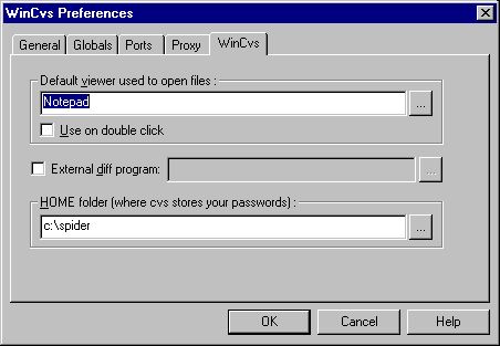 To start configuring WinCVS, click on Admin at the top of the screen and then Preferences. This should get you: